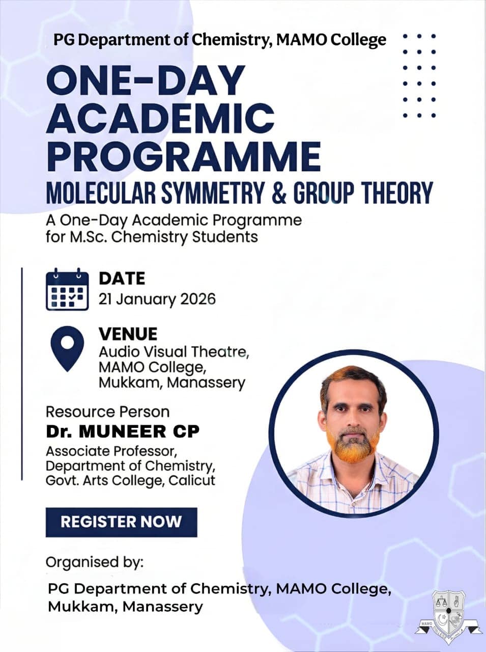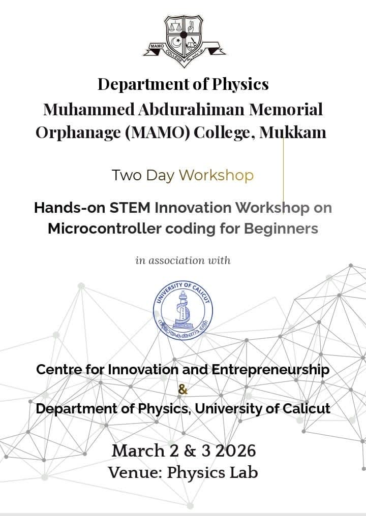 MAMO College is a First Grade Government-Aided College of Arts, Science, and Commerce, affiliated to the University of Calicut. Recognized as a Muslim Minority Educational Institution by the National Commission for Minority Educational Institutions, Government of India, the college operates under sections 2(f) and 12(B) of the UGC Act. Reaccredited with an “A” Grade by NAAC, the college has grown remarkably since its inception in 1982 as a Junior College. It became a Degree College in 1991 and attained the status of a First Grade College in 2002. Situated in the serene and lush green landscape of Mukkam, just 30 km from Kozhikode, the college now offers 11 undergraduate and 6 postgraduate programmes across diverse disciplines.